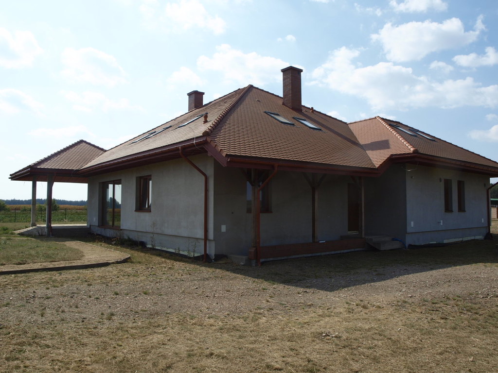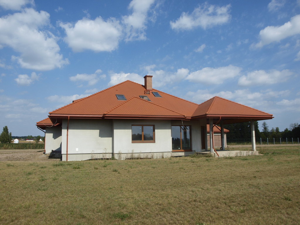 – budynek ocieplony, wykonana elewacja, niepomalowany