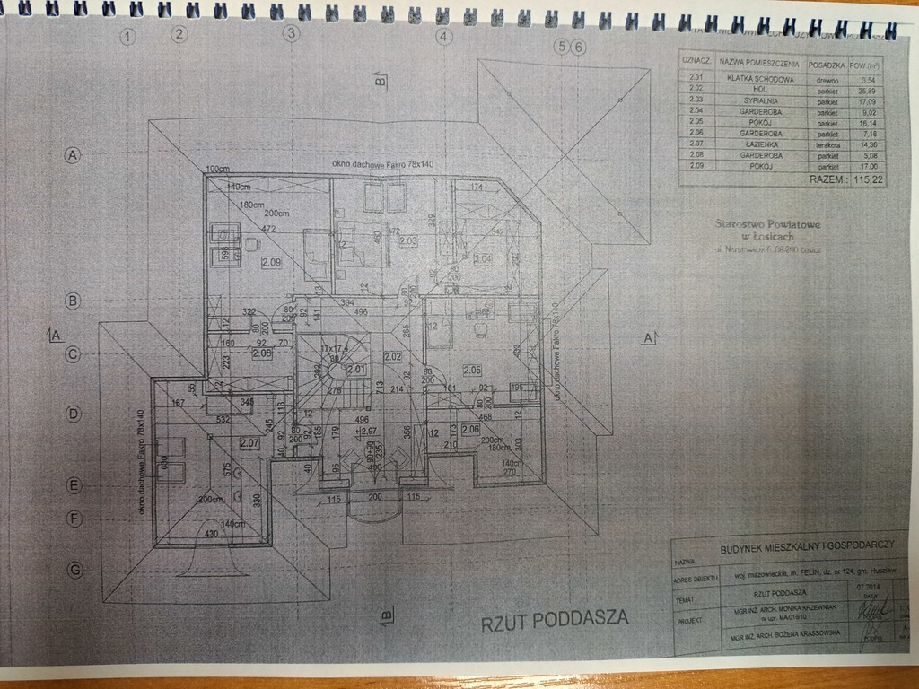 – poddasze – klatka schodowa, hol, 3 pokoje, 3 garderoby, łazienka.